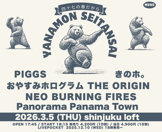 新宿LOFT店長の生誕祭が2026年3月5日(木)開催。おやすみホログラム THE ORIGIN、Panorama Panama Town、NEO BURNING FIRES、PIGGS、きのホ。が出演