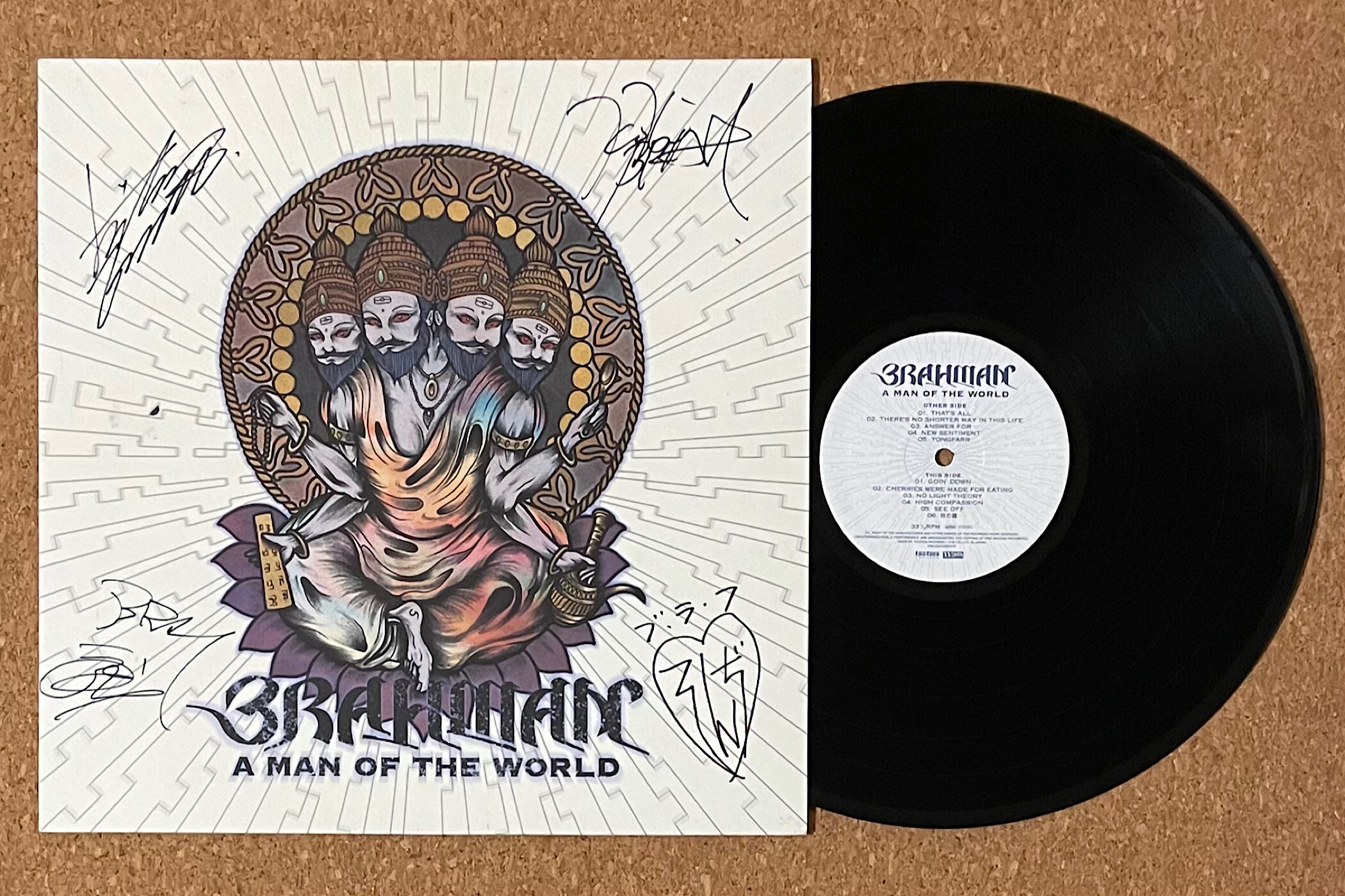 TOSHI-LOW氏(vo)、KOHKI氏(g)、MAKOTO氏(b)、RONZI氏(ds)にサインを入れてもらった『A MAN OF THE WORLD』のアナログ盤。CDとはジャケットのデザインが異なります。