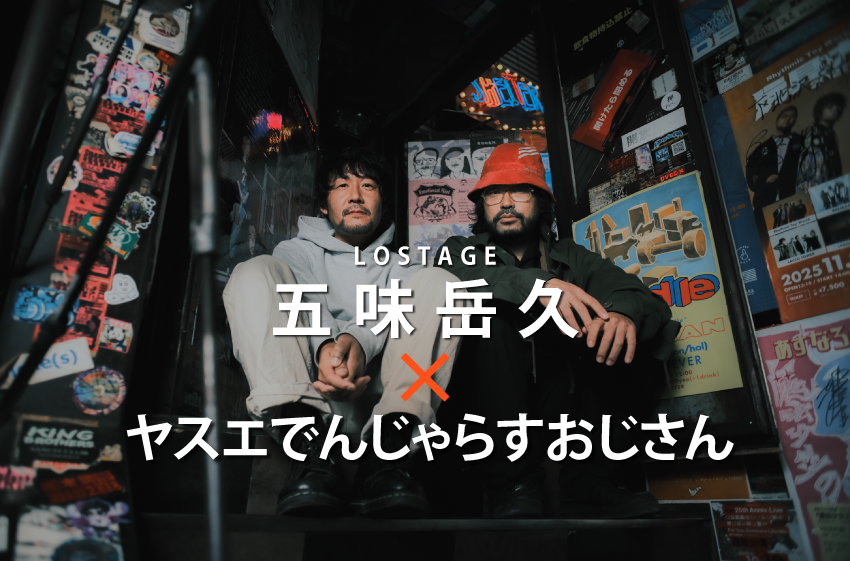 この『環ル日々』というイベントは、若くして他界したSHELTERのスタッフ(上里環)とヤスエとの縁から始まり、2025年2月より2カ月に一度、LOFTとSHELTER交互に錚々たるゲストを迎えて行ってきた。そのファイナルとなるQUATTRO公演にはLOSTAGEとPEDROを迎える。この一年を締めくくる特別な日に向けて、五味岳久(LOSTAGE)、アユニ・D(PEDRO)とそれぞれ対談を実施した(アユニ・D編は後日公開)。2人の出会い、お互いの音楽について、同じグルーブを感じるという2人の共通点、人との関わり方、1stアルバムのことなどを語ってもらった。(Interview:小野妙子 / Photo:タカギタツヒト)