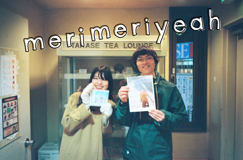 結成15年、東京を拠点に活動する2人組「merimeriyeah」は、メンバーチェンジを重ねながらも、ひたむきにインディーオルタナティブロックを演奏し、曲を作ってきた。東京のライブハウスに足を運んでいるリスナーやバンドマンであれば、すでにその名前やアグレッシブな演奏を目にしている人も多いだろう。日々へのまなざしを欠かさずに続けてきた孤独な疾走は、確かな轍と共感の輪を広げ、ひたむきなクリエイティブが生まれ続ける独自の磁場を形成し、ついに初のフルアルバムを、盟友・Townのメンバー主宰の<けのびレーベル>からリリースした。ただ、メリメリがこれまでに残してきた膨大な曲群やMV作品、ライブ映像に触れる機会はあるものの、2人が積み重ねてきたバンドの歴史について、まとまった形で語られてきた記録は、ほぼ存在しない。アルバム発売を記念したリリースツアーも佳境に迫る中、2人の活動を長らく見守ってきた友人でもあり、ツアーの京都編を企画する筆者が聞き手となり、今一度メリメリの輪郭を捉えるためのインタビューを敢行した。[Interview:市川(knit, BEING YOUNG)|Photo:ksn(Town, けのびレーベル)]