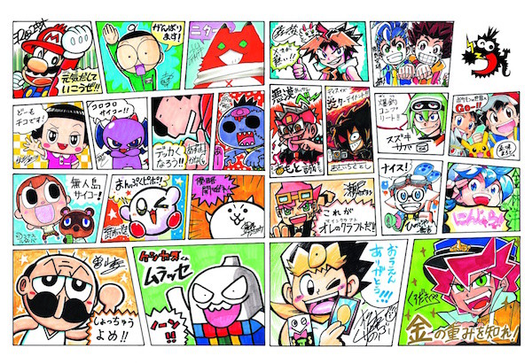 注目は、 全連載まんが家が参加して作り上げた“寄せ描き色紙”。 縦420mm、 横594mmのジャンボサイズで、 こちらの本物(額装)が1名に当たる。超美麗な原寸大の複製版や縮小サイズ版もプレゼント。 コロコロファンならずとも垂涎の1枚だ。