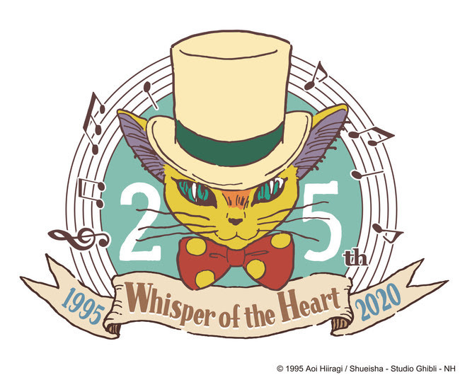 作品に登場する「地球屋」にあった猫人形「バロン」を中心に、 五線譜には音符がちりばめられ、 周年の「25th」、 公開年である「1995」と英字タイトルの「Whisper of the Heart」の文字がデザインされている。 25周年記念のオリジナルロゴ。