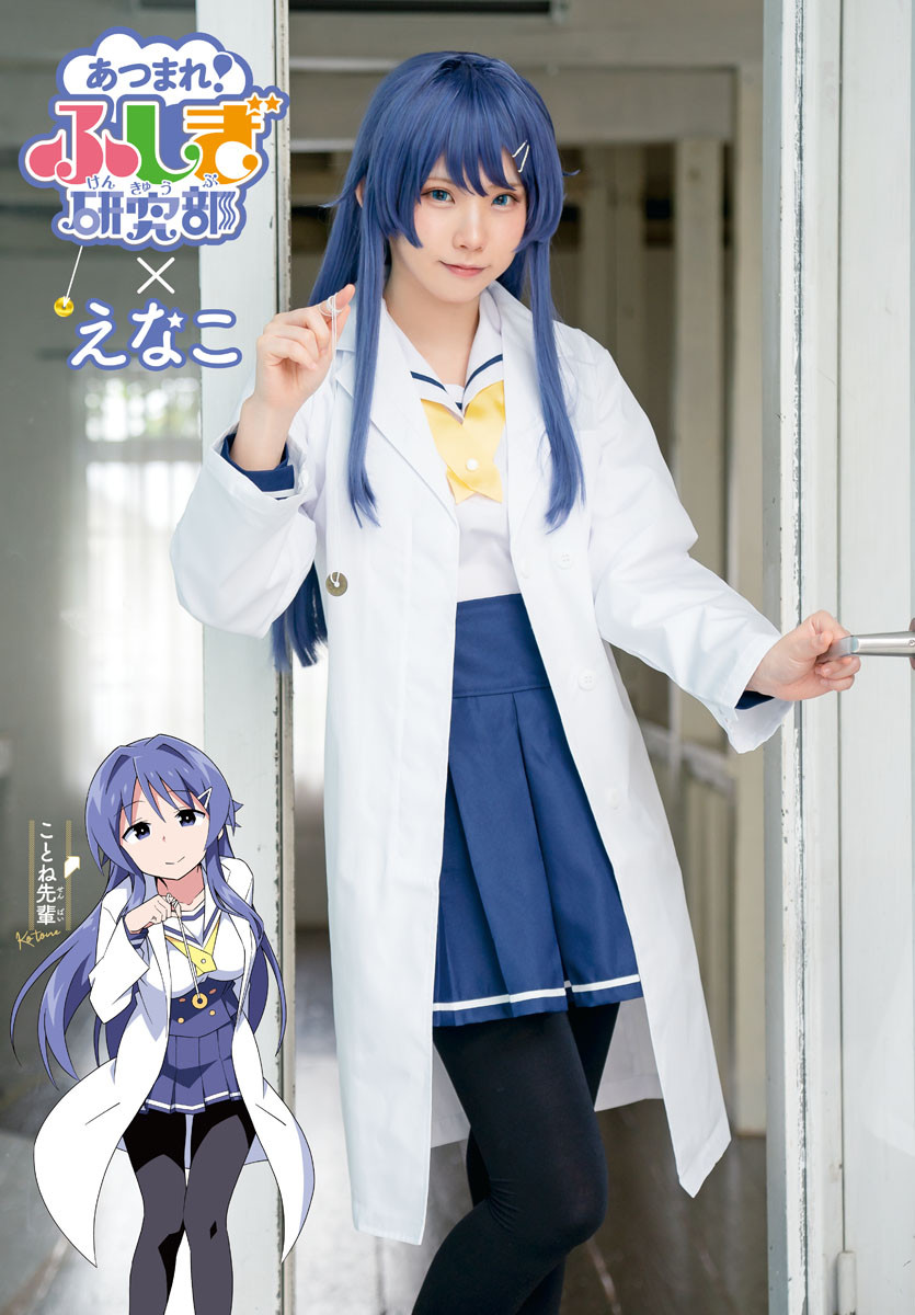 巻頭グラビアは特大9Pで、 水着グラビアに加えて、 今号で連載200回を迎えた『あつまれ!ふしぎ研究部』とのコラボコスプレも披露。 制服姿にスクール水着姿。そして、 えなこ×『声がだせない少女は「彼女が優しすぎる」と思っている』&『メイカさんは押しころせない』のオール未公開「コスプレフォトブック」付録が付く。さらに、 QUOカード応募者全員サービス企画も実施。文字通りの“えなこ大特集号”だ。