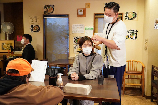 撮影を終えた島崎は、「ごぼう天がサクサクしていてとてもおいしかったです。揚げ物だけど、汁が重すぎないから、最後までぐたっとならずに食べ切れて、とてもいい感じでした」と今回舞台となった“大地のうどん”のうどんを絶賛。「おいしそうに食べている感じを意識しようとしても、ごぼう天が大きすぎて(苦笑)。あれを上手に食べられる人はいないんじゃないかと思いつつ「いいや!」と思って、食べ始めました」と、撮影時の苦労を語る。本作の見どころについて、「私はひとり暮らしなので、よく動画などで人が食べている姿を見ながら食事をするんです。きっとそういう目的の人っていると思うので、一緒にごはんを食べているような感覚で、ドラマを楽しんでもらえたらいいなと思います」とアピールした。