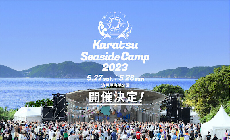 2022年5月28日(土)、29日(日)の2日間、佐賀県唐津市にある波戸岬海浜公園にて実施された、九州エリア初にして、海に囲まれた自然を舞台にした日本初のシーサイド・キャンプ&ミュージック・フェス『Karatsu Seaside Camp 2022 in 玄界灘』。2日間で16組のアーティストが出演し、4,700人が来場したこのフェスが、2023年5月27日(土)、28日(日)に第2回目を開催することが決定。チケット発売や、出演者等は、追って発表する予定。