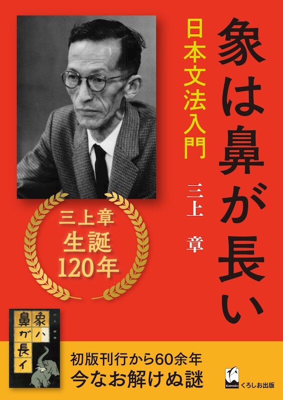 日本語研究で知られる言語学者、三上章の生誕120年と、同氏の代表作『象は鼻が長い ―日本文法入門』が第40刷となるのを記念して、株式会社くろしお出版が同書を全帯(ダブルカバー)の特別仕様で重版した。目次など詳細情報(くろしお出版ウェブサイト)はこちら。