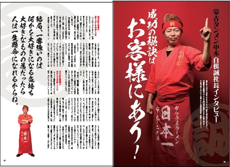もちろん特集も充実。初公開となる「中本誕生秘話コミック」や、白根誠社長の熱い想いがたぎるインタビューを筆頭に、中本芸人(グランジ・五明、平成ノブシコブシ・徳井、天津・向)による鼎談や、中本好きを公言する中川翔子のインタビュー、そしてラーメンYouTuberのSUSURUが誌面に登場。それぞれの中本ヒストリーや中本への愛を語っている。