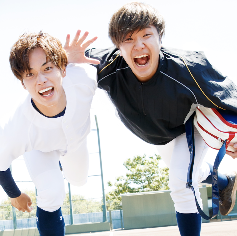 あめんぼぷらすは「野球部あるある」や「野球部員のルーティン」など野球部員の日常をメインに投稿している。しょーた(写真左)は俳優・羽谷勝太として、おまつ(写真右)は作家・松井尚斗としても活動中。