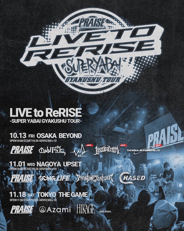 また、10月13日(金)からは『PRAISE LIVE to ReRISE -SUPER YABAI GYAKUSHU TOUR-』を東名阪で開催することが決定している。