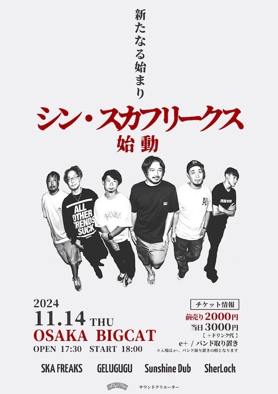 さらに、新メンバーを加えたSKA FREAKSでの初の自主企画となる、新メンバーお披露目企画は11月14日(木)大阪BIG CATにて開催される。