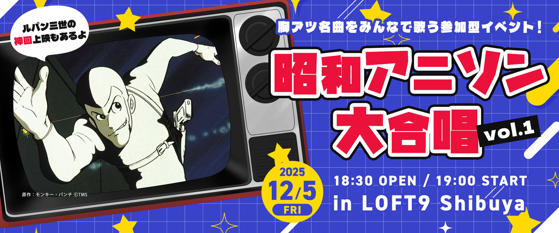 来たる12月5日(金)、東京・渋谷のLOFT9 Shibuyaで、新機軸の参加型アニソンイベント『昭和アニソン大合唱 vol.1』が開催されることが決定した。