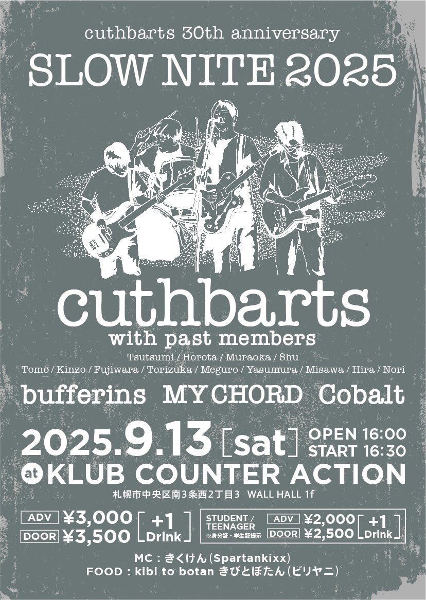 札幌emoの雄、cuthbartsの30周年を祝うイベントがさる9月13日に札幌KLUB COUNTER ACTIONで開催された。