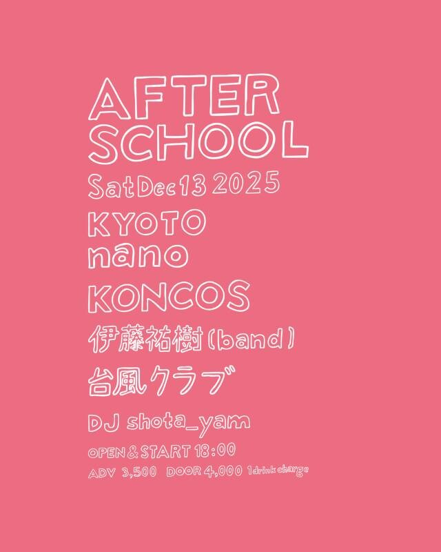 今年で開催10年目を迎えるKONCOS主催パーティー『AFTER SCHOOL』が下北沢SHELTER・京都nanoで開催される。