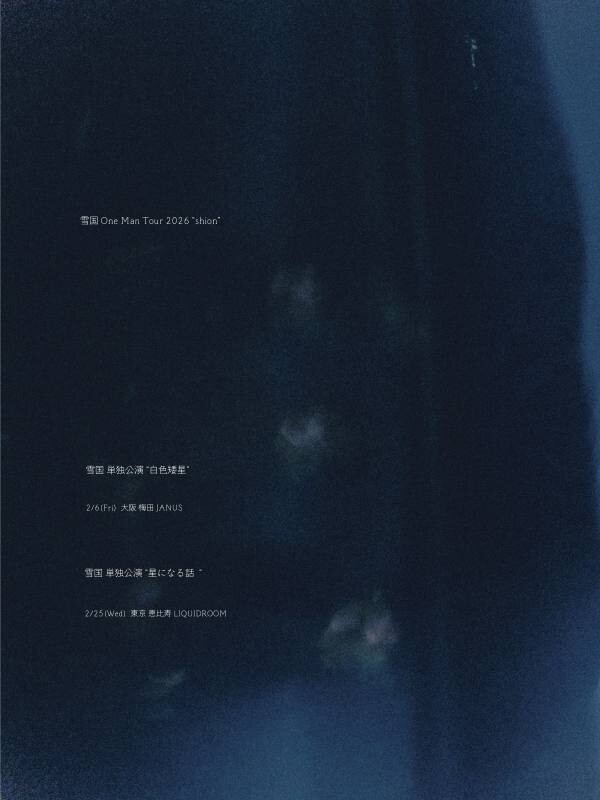 東京を拠点に活動する3人組インディーロックバンド・雪国が11月5日(水)にリリースした2nd Full Album『shion』を引っ下げて東阪ワンマンツアー、『雪国 One Man Tour 2026 “shion” 2/6 雪国 単独公演 「白色矮星」/ 2/25 雪国 単独公演 「星になる話」』を開催することを発表した。