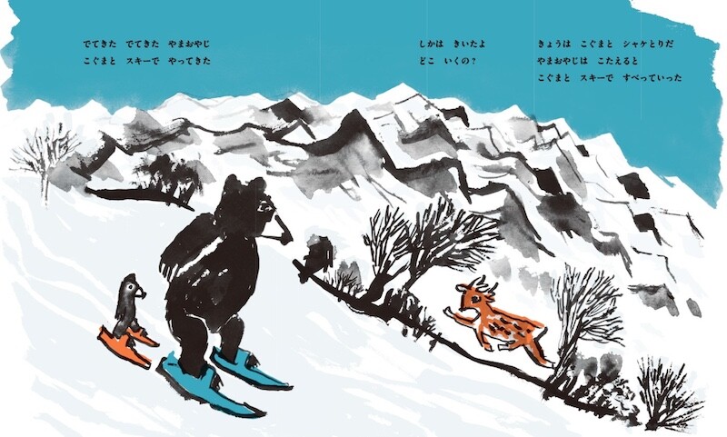 北海道の雪山に暮らすくまの親子。お父さんぐまの「やまおやじ」とこぐまは、スキーにのって、川へシャケとりに出かけます。「友だちにあげるんだ」とはりきるこぐま。無事にシャケをとることができるのでしょうか……。