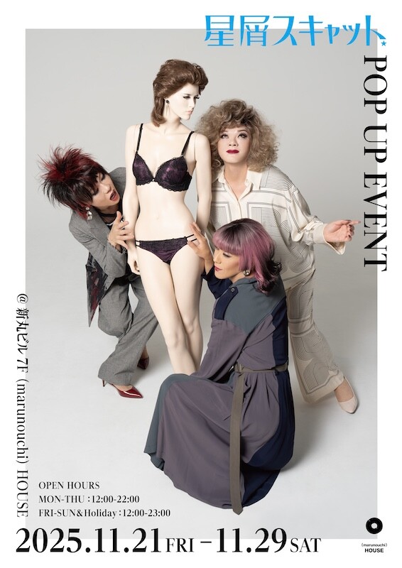 期間中は星屑スキャットのメンバー(ミッツ・マングローブ、ギャランティーク和恵、メイリー・ムー)も、突発的に会場で皆さまをお迎えするという。