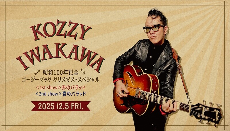 『KOZZY IWAKAWA 昭和100年記念 コージーマック クリスマス・スペシャル』と題し、12月5日(金)に丸の内 COTTON CLUBで二部構成で行なわれる。