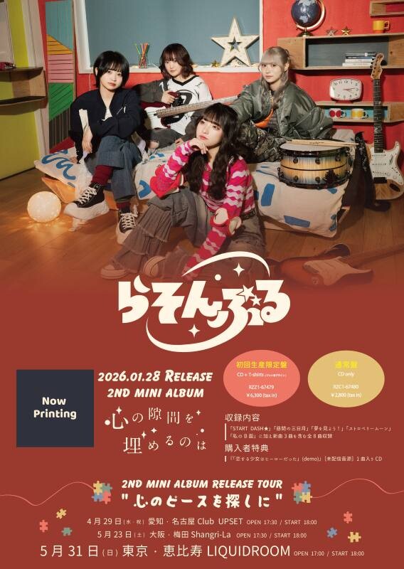 4ピースロックバンド・らそんぶるが、東京・渋谷duo MUSIC EXCHANGEで開催した1st Live Tour『月夜の下、私たちは離ればなれにならないツアー』ファイナル公演にて、新たなアーティスト写真、バンドロゴを解禁し、さらに来年1月28日に2nd mini album『心の隙間を埋めるのは』をリリースすることを発表した。