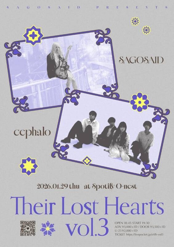 東京を拠点に活動するオルタナティブロック・アーティストSAGOSAIDが、2026年1月29日(木)に東京・渋谷Spotify O-nestにて自主企画イベント『Their Lost Hearts vol.3』を開催する。3回目となる今回は東京の4人組バンドcephaloをゲストに迎えたツーマンライブとなる。