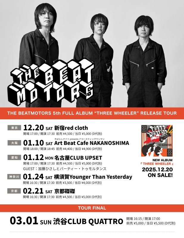 今年、結成21周年を迎えたロックバンド、ザ・ビートモーターズが5枚目のフルアルバム『THREE WHEELER』を12月17日(水)に配信リリースする。