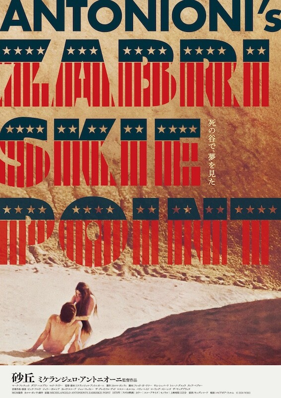 このたび解禁となったティーザービジュアルは、アメリカ初公開当時のデザインを使用。<死の谷>の乾いた大地で主演の男女が戯れる写真に星条旗のデザインを施した巨大な原題ロゴが配置され、タイトルの前には<アントニオーニの>と堂々と監督名が謳われている。「死の谷で、夢を見た」のコピーは、今回の劇場公開用の新たなコピーだ。