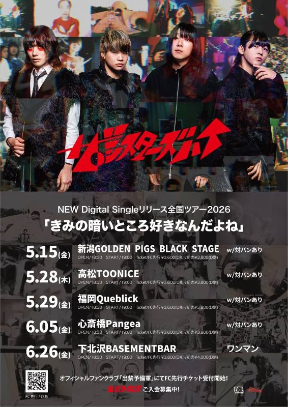 新潟・高松・福岡・大阪・東京の全国5都市で開催。ツアーファイナルとなる6月26日(金)は、下北沢BASEMENTBARにてワンマン公演を実施する。なお、デジタルシングル「きみの暗いところ好きなんだよね」の詳細については、後日発表される。