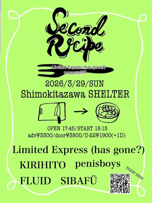 また、リリース記念イベントとして、3月29日(日)には下北沢SHELTERにて主催イベント『Second Recipe』を開催。