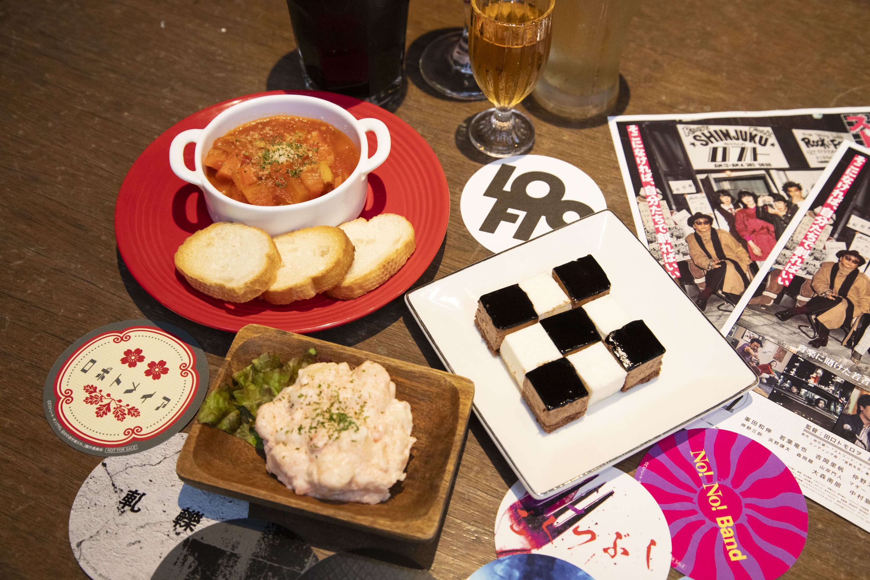 劇中に登場するバンドをイメージしたオリジナルドリンクとフードを提供。1品ご注文ごとに1枚コースター(全8種)をランダムでプレゼント。