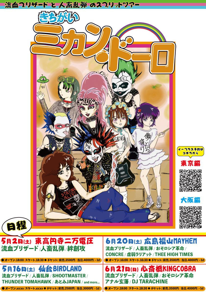 さらに、流血ブリザードと人畜乱弾によるスプリット・ツアー『きちがいミカン・ドーロ』の開催が決定。
