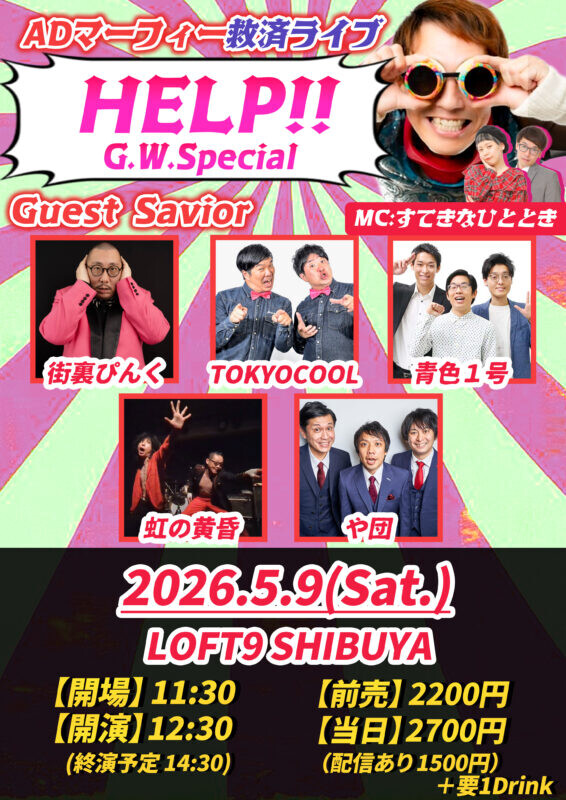 『ADマーフィー救済ライブ HELP!!』が4月20日(月)阿佐ヶ谷LOFT A、5月9日(土)LOFT9 Shibuyaでそれぞれ開催される。