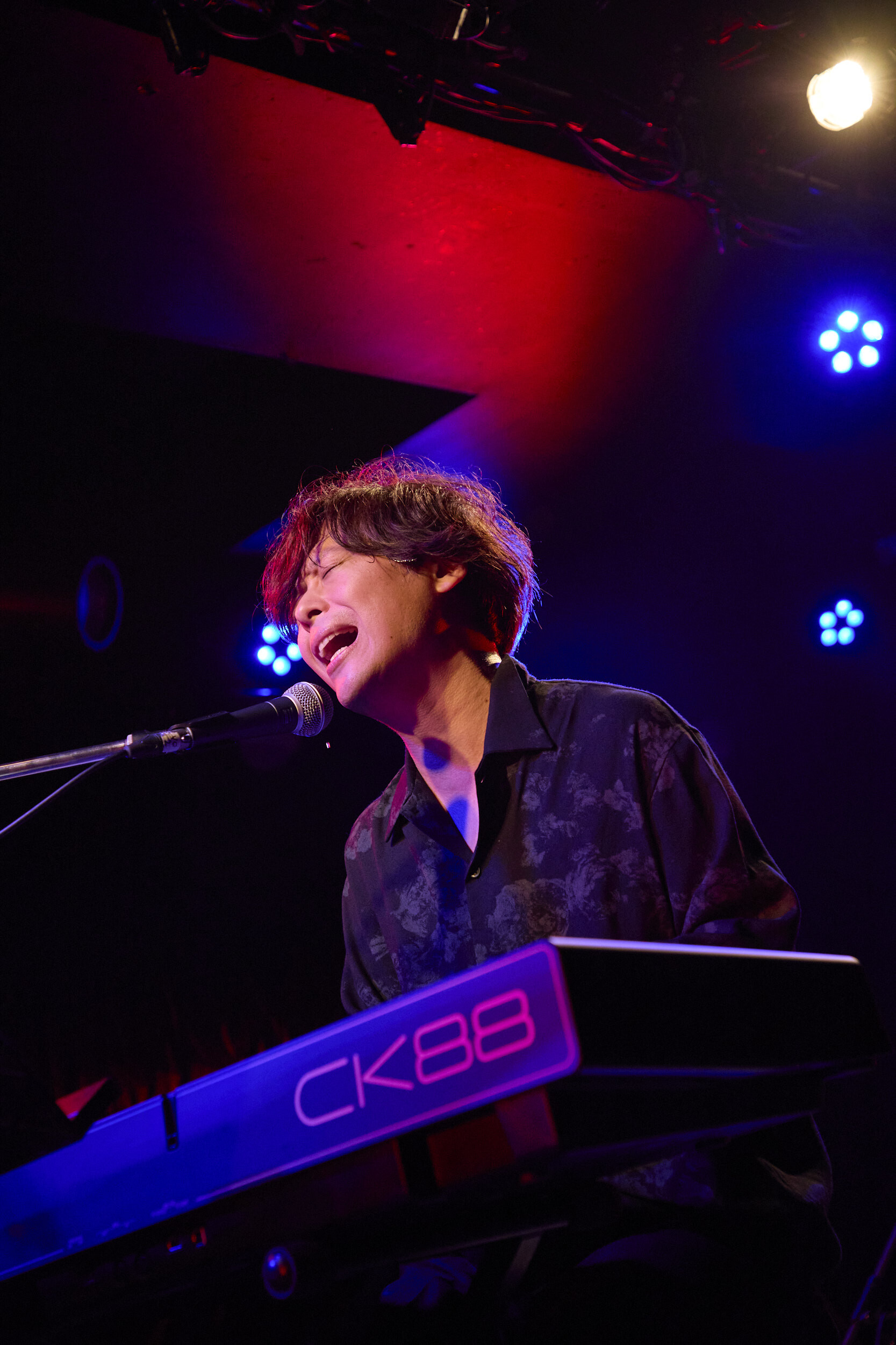 2024年にリリースしたデビュー35周年記念アルバム『Modern Vintage Future』からの楽曲を多めに含んだ前半戦を終え、ムードたっぷりに低音ベルベットボイスを響かせつつも途中でビートが激しくジャングル超に変貌する「KAORI」を契機に、ライブ後半では往年の名曲たちも披露された。イントロの段階で「ワッ」と歓喜の声が上がったのは代表曲の一つ「虹の都へ」。力強く瑞々しい、そしてメロディアスな音はとてもじゃないが1990年リリースとは思えない。色褪せない名曲の風格に、フロアは喝采で満たされた。続く「夢の中で会えるでしょう」がじんわりと場内の隅々まで響き渡る様子は、さながらハッピーエンドの映画のエンドロールのよう。後半ではクラップとコーラスを観客たちに委ね、そこへ歌を重ねることでより一層チアフルな空気を作り出した。