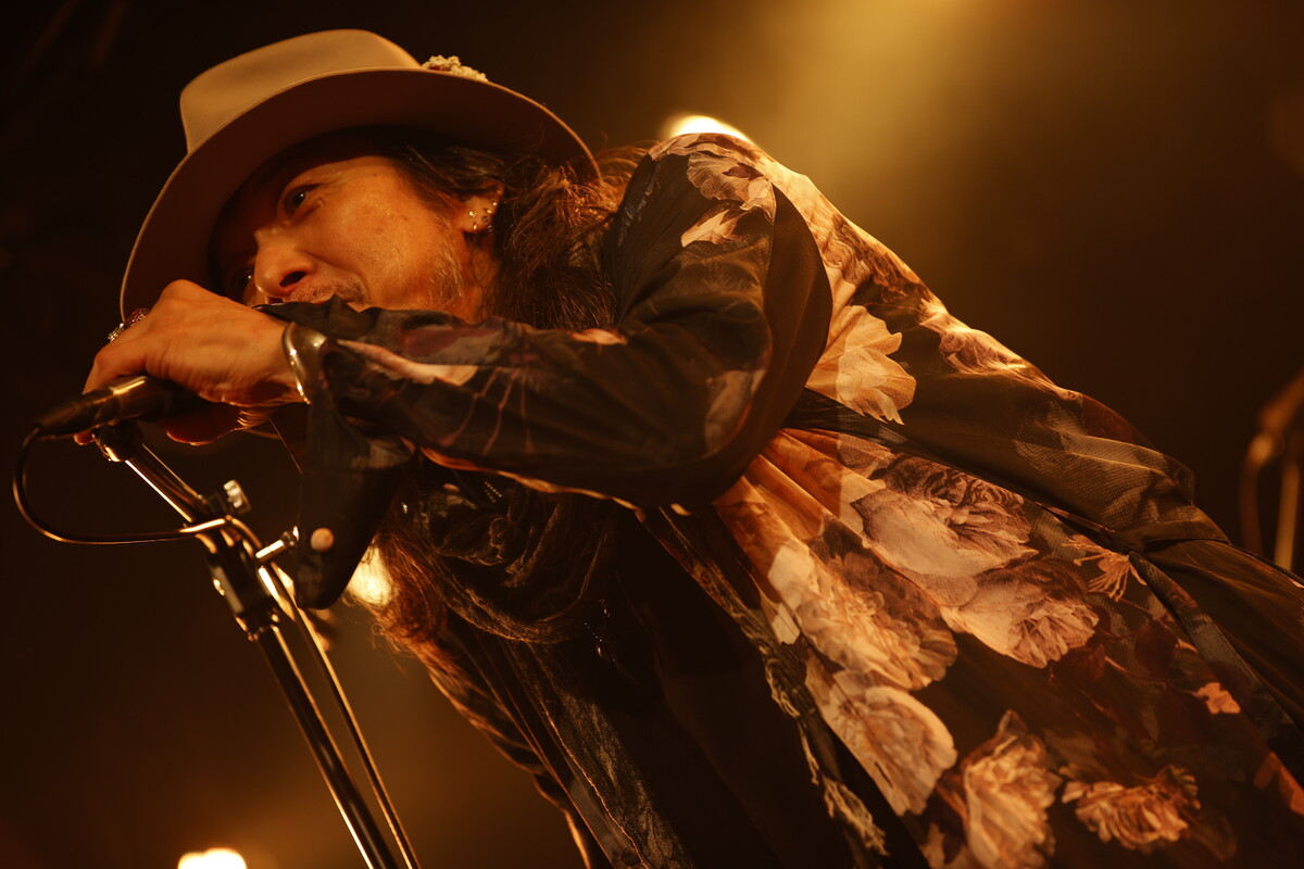「今日は10代、20代、30代、40代、50代に書いた曲をやってるんだけど、次は60代に書いた曲をやります」と言ってから、演奏したのはバラララララとメンバー全員でシンガロングする「Old Gunslinger」。世の中の無情や不条理に打ちのめされそうになりながら、それでも《だけど、まだここで降りるわけにはいかない 好きでいたいんだ 生きることを もう一度》と65歳のSIONが歌う言葉が胸を打つ。前回のSION'S SQUADのツアーで初めて聴き、SIONの新しいアンセムになることを確信したが、この曲もSION'S SQUADのライブに欠かせない曲になっていきそうだ。