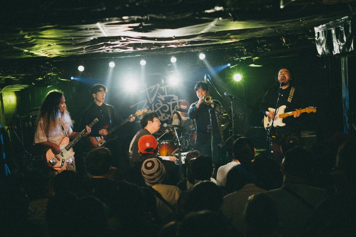 ワンマンということもあってか、昨年のイベント時よりもまったりとした柔らかい雰囲気を感じつつも、アンコールラストの「終末論」では、壮大なサウンドと情景が浮かぶ孤独な歌詞に心がざわざわした。感動的な演奏に浸っている最中、急に現実を突きつけられるような鋭い瞬間が、毎回ライブのどこかにある。「『東京』というアルバムに別れを告げて次の旅へ出よう」。この日の「乾杯!」という締めの言葉は、ワンマンをやり切ったことだけでなく、次の旅路へ向けての祝杯のように聞こえた。完璧主義ゆえに1stアルバムを出すまでに十数年かかったそうだが、次作の完成はいつになるのだろう。楽しみに待ちながらヤスエでんじゃらすおじさんの新章に期待したい。